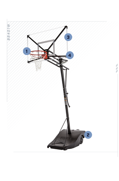The Silverback 54-inch NXT portable basketball hoop is pushing the envelope for portable basketball hoops. The advanced technology and strategic engineering of this goal makes for faster assembly, improved rebound, superior strength, unmatched stability, and effortless transportability. Compare the features of the Silverback NXT to other portable goals on the market, and you will see why this hoop is the next big thing in portable basketball hoops. - Stabili-Frame – The Silverback NXT portable basketball hoop features Stabili-Frame technology, creating unmatched stability for increased playability and added safety. The slanted pole design was engineered to offer even weight distribution across the entire base. Unlike competitor goals, the pole directly connects to the steel frame below the base, increasing the integrity of the structure. Compare to most portable hoops that utilize the blow molded base as a support structure – which is typically the first piece that fails. The shape of the base and the weighted ballast wheels create an optimal center of gravity, ensuring your goal will stay upright. Infinity Edge Backboard - Unlike traditional backboards that are framed by a plastic or metal edge, the Silverback NXT portable basketball hoop features an Infinity Edge Backboard with edges that wrap around to the back of the backboard as one continuous material. This design not only creates the modern, clean look of the portable basketball hoop, but, more importantly, gives the backboard unmatched strength – greatly reducing “dead" spots in the backboard that are common among portable hoops. This technique, folds the edges of the material backward, creating a stronger face for superior rebound. Ergo-Move - The sloped base design on the Silverback NXT creates a completely unique weight distribution that allows the portable basketball goal to be moved by two people with much greater ease than traditional portable basketball goals. This design enables the goal to be tilted backward onto its large weighted wheels, relieving much of the weight that a person must support, similar to the engineering of a wheelbarrow. The hoop is then easily rolled to its new location while the rear kickstand prevents the goal from tipping over. Quick-Play - No one likes long assembly projects, so the Silverback NXT portable basketball hoop was designed to make assembly as simple as possible. The NXT comes partially assembled with attached hardware, so you simply attach the major pieces using only a few required tools. The NXT portable basketball hoop allows you to assemble your goal in approximately 90 minutes, so you can start playing. Please note that this listing features Silverback basketball hoops. While Goalsetter basketball hoops are proudly made in the USA, the hoops in this listing are from a different brand.