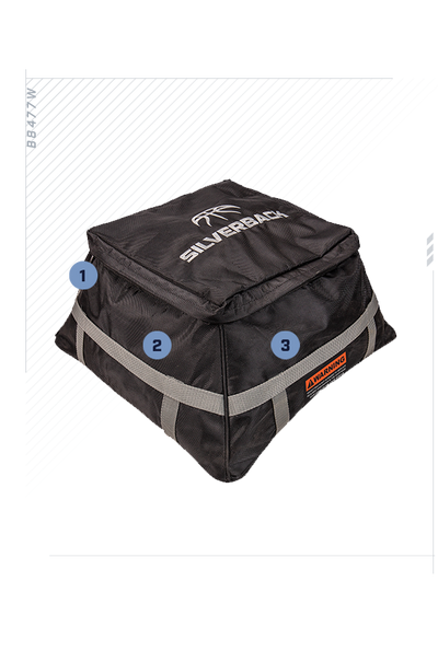 Add weight on top of your portable basketball hoop base with our all-new Silverback Universal Weight. The additional weight will increase stability and is designed to fit on top of most portable hoop bases. The weight holds up to 100 lbs. of sand and removes the use for any ugly, eyesore alternative objects. Made from durable materials, the universal weight will last years and withstands severe weather conditions. This listing only includes the Silverback portable weight bag and does not include a portable basketball hoop, basketball goal base, or sand.